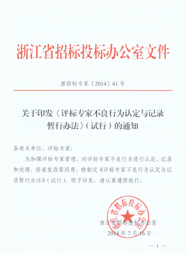 关于转发《评标专家不良行为认定与记录暂行办法》(试行)的通知